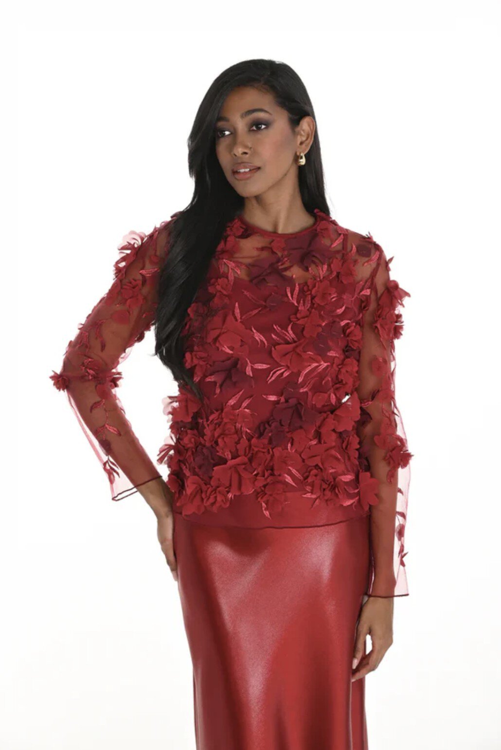 Adorned with embroidered floral embellishments, this long-sleeve piece features a chic crew neck and straight sleeves, perfect for formal, evening, or party occasions. Embrace a romantic, chic style with this floral-patterned masterpiece, making every event unforgettable.